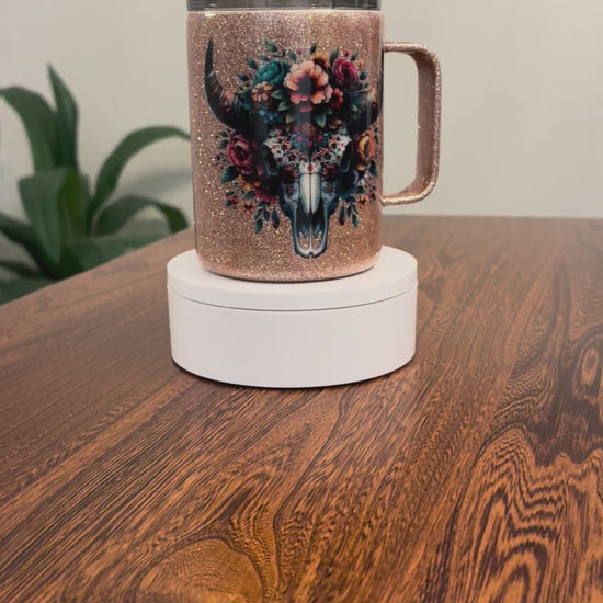 This double-walled stainless steel mug keeps your drinks piping hot or refreshingly cold for hours. It features a BPA-free lid for safe sipping on the go. To keep it looking fabulous, hand wash only—skip the dishwasher, microwave, and soaking. The colorful alcohol inks, glitter, and or decals are sealed beneath a FDA-approved epoxy coating, making sure your mug stays dazzling and durable day after day.
