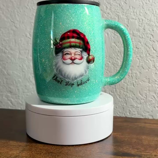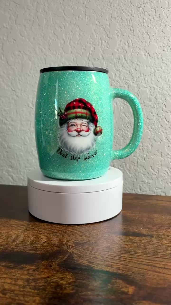 This double-walled stainless steel mug keeps your drinks hot or refreshingly cold for hours. It features a black swivel top BPA-free for safe sipping on the go. To keep it looking fabulous, hand wash only—skip the dishwasher, microwave, and soaking. The colorful alcohol inks, glitter, and or decals are sealed beneath a FDA-approved epoxy coating, making sure your mug stays dazzling and durable day after day.