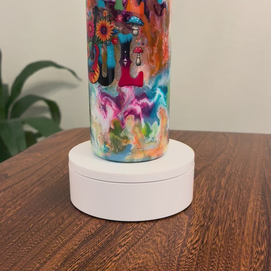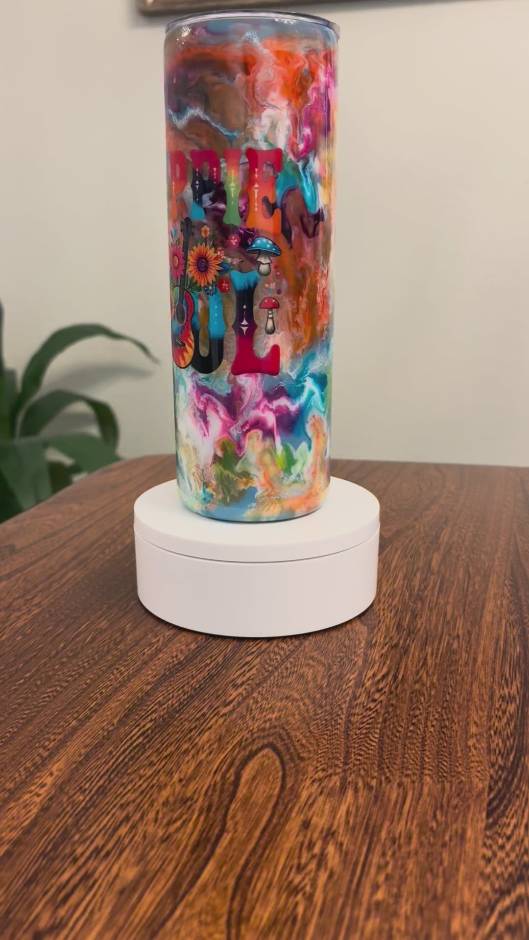 This double-walled stainless steel tumbler keeps your beverages hot or cold for hours. It comes with a BPA-free lid and straw, ensuring safe and easy drinking. To maintain its quality, hand wash only—avoid soaking, dishwashers, and microwaves. The vibrant alcohol inks, glitter, and or decals are sealed under a FDA-approved epoxy coating, providing long-lasting protection and durability.