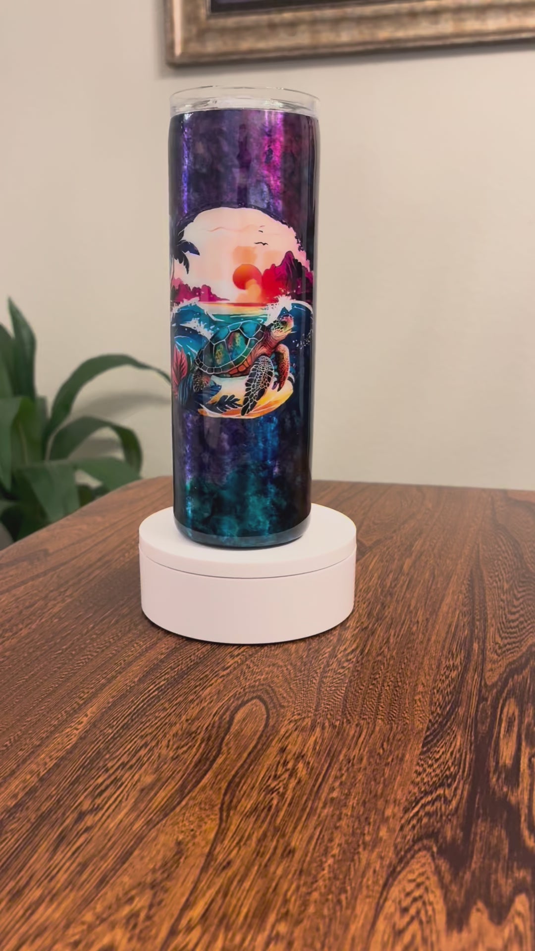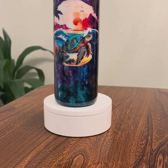 This double-walled stainless steel tumbler keeps your beverages hot or cold for hours. It comes with a BPA-free lid and straw, ensuring safe and easy drinking. To maintain its quality, hand wash only—avoid soaking, dishwashers, and microwaves. The vibrant alcohol inks, glitter, and or decals are sealed under a FDA-approved epoxy coating, providing long-lasting protection and durability.