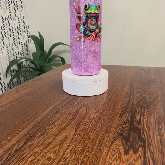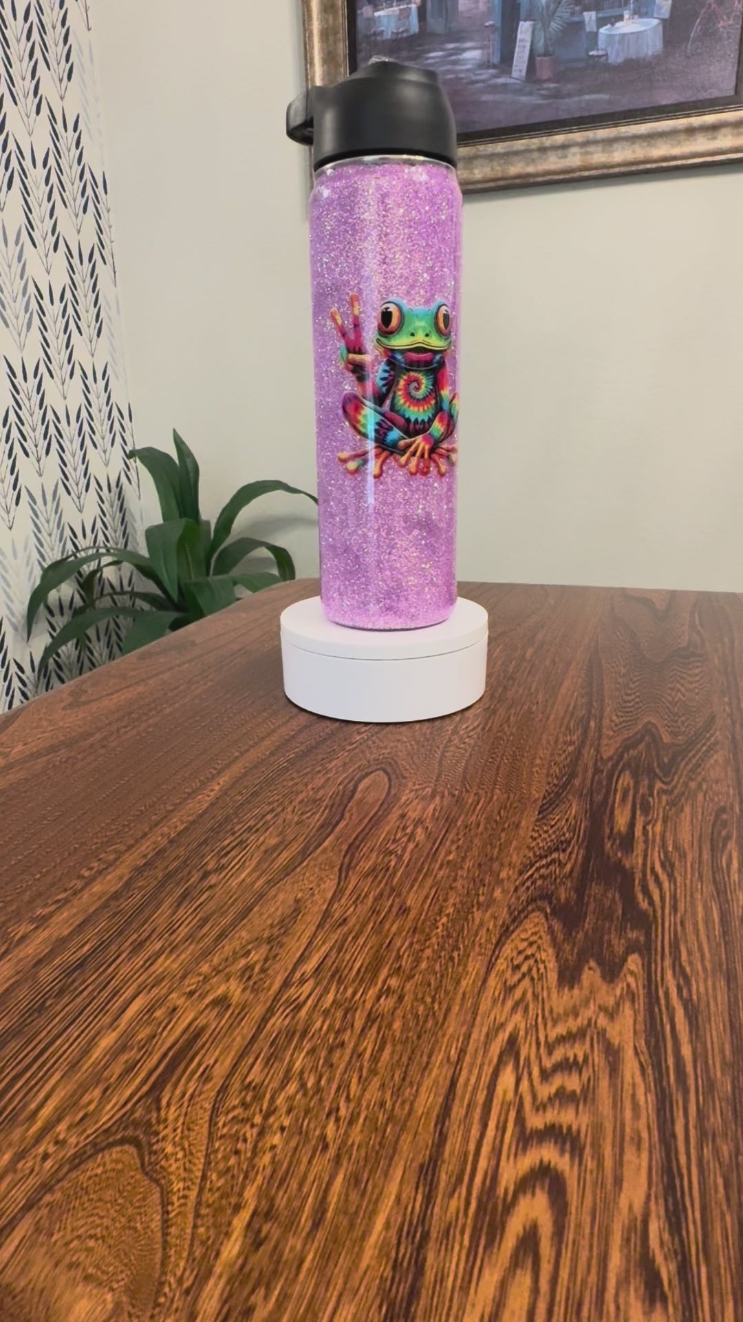 This double-walled stainless steel tumbler keeps your drinks perfectly hot or cold for hours! It includes two different lids to switch things up. Just remember to hand wash it gently—no soaking, dishwashers, or microwaves allowed. The fun alcohol inks, glitter, and or decals are all safely sealed under FDA-approved epoxy, so your tumbler stays dazzling wherever you take it!