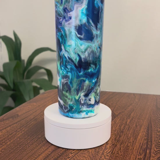 This 30 oz Skinny Stainless Steel Tumbler features double-wall insulation to maintain your beverages at the perfect temperature for hours. It includes a BPA-free lid and straw for safe, convenient sipping. To preserve its quality, hand wash only—avoid soaking, dishwashers, and microwaves. The vibrant alcohol inks, glitter, and or decals are protected beneath FDA-approved epoxy for lasting durability.