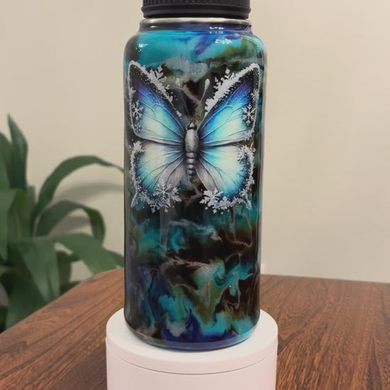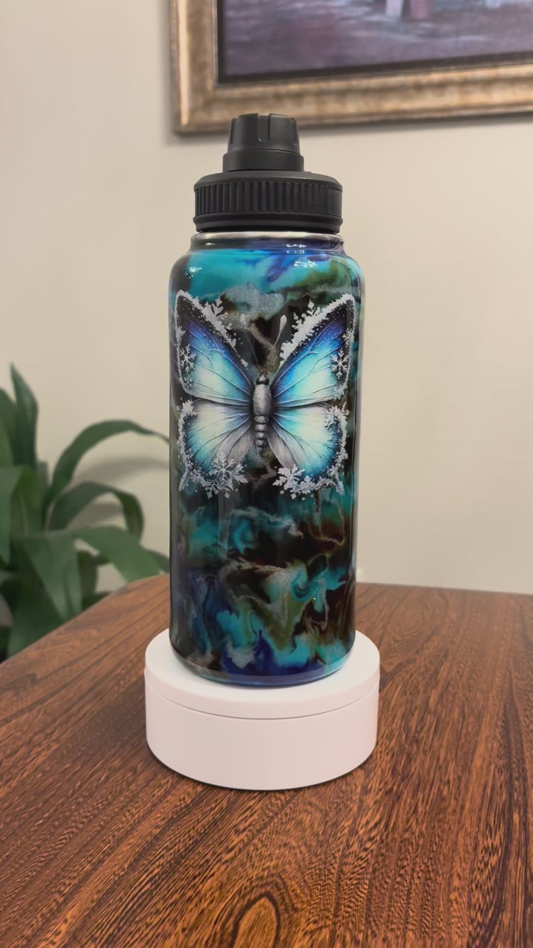 Made from stainless steel with double-wall insulation, this 32oz Hydro tumbler keeps your drinks just right for hours—cold stays cold, hot stays hot. It features two unique lids to mix up your sipping game. To keep it in tip-top shape, hand wash only—no soaking, dishwashers, or microwaves allowed. The vibrant alcohol inks, glitter, and or decals are sealed under a FDA-approved epoxy coating for long-lasting sparkle and strength.