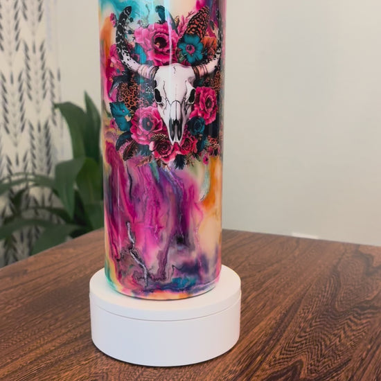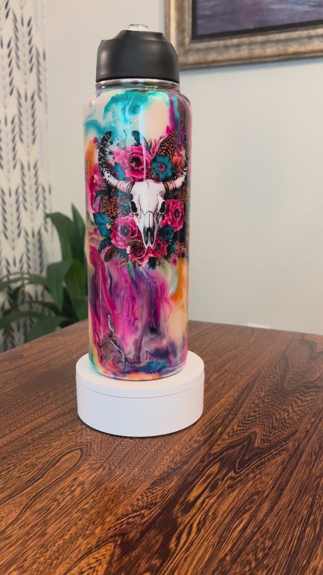 Made from stainless steel with double-wall insulation, this 40 oz Hydro tumbler keeps your drinks just right for hours—cold stays cold, hot stays hot. It features two unique lids to mix up your sipping game. To keep it in tip-top shape, hand wash only—no soaking, dishwashers, or microwaves allowed. The vibrant alcohol inks, glitter, and or decals are sealed under a FDA-approved epoxy coating for long-lasting sparkle and strength.